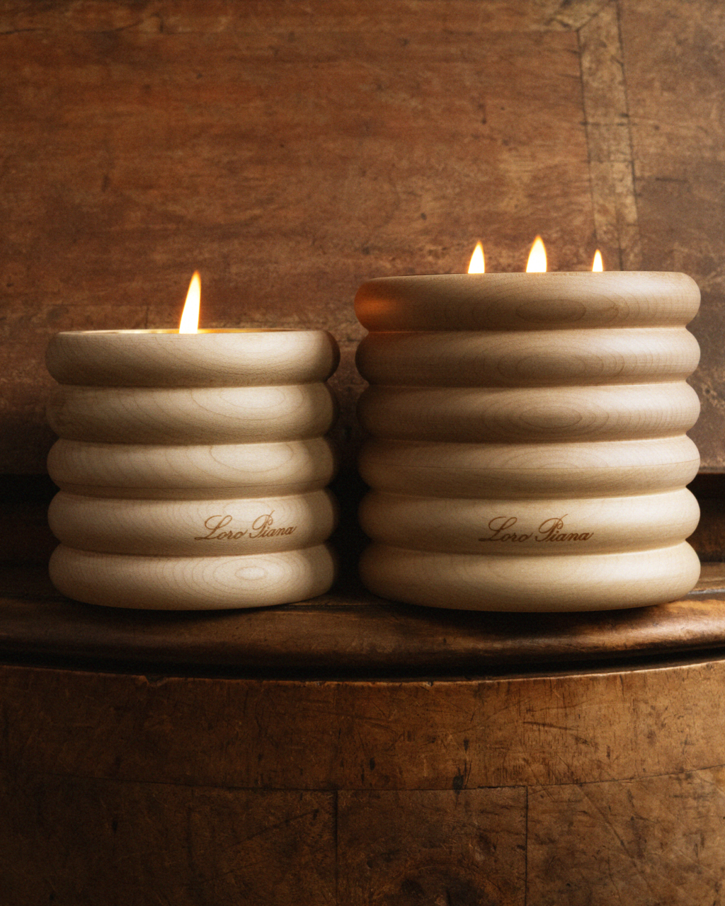 不仅如此,Loro Piana还将这种对珍稀面料的触感延伸至嗅觉领域。全新家居香氛系列推出了Mystic Fleece(神秘羊绒)、Cashfur Cloud(Cashfur云雾)和Smoky Tweed(烟熏粗花呢)三款蜡烛。这些香氛被置于仿若纺线捆的精雕木质容器中,让人联想到骆马毛与羊绒的奢华质感,将居家体验转变为一场沉浸式的嗅觉之旅。