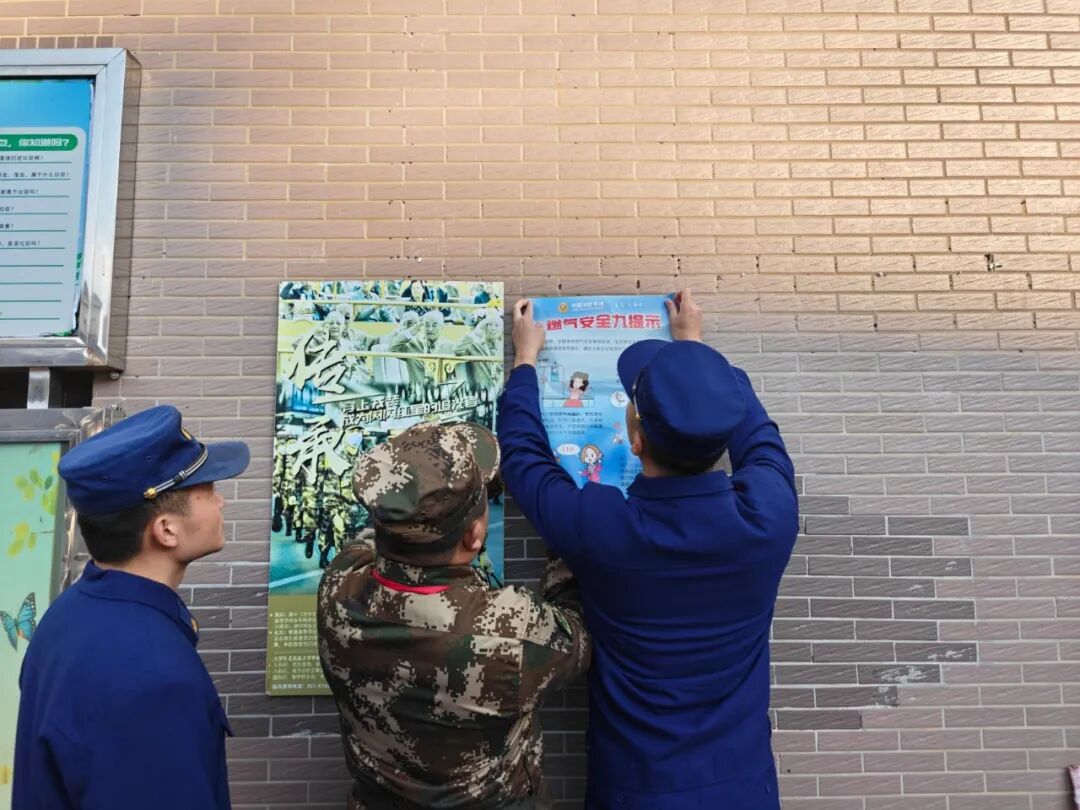 11月19日下午,汉南区消防救援大队幸福消防救援站同步开展“119消防宣传月”活动,组织消防员前往新长江香榭澜溪小区,为居民普及消防安全知识。