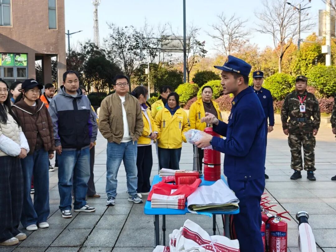 活动以理论讲解和实操演练相结合的形式展开,消防员用通俗易懂的语言,为居民和小区工作人员详细讲述家庭防火常识、初期火灾处置方法及火场逃生自救等基础知识。