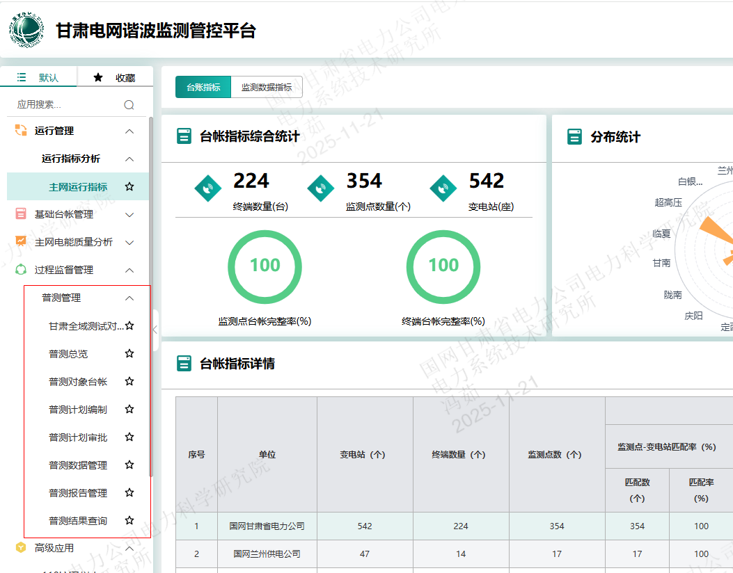 同时,技术人员通过完成甘肃全域电能质量测试对象台账收资,精准导入系统35千伏及以上变电站台账300余条、测试对象台账2000余条,彻底摸清全域测试对象“家底”,为精准开展普测工作提供全面数据支持,标志着甘肃普测工作迈入规范化、数字化新阶段。