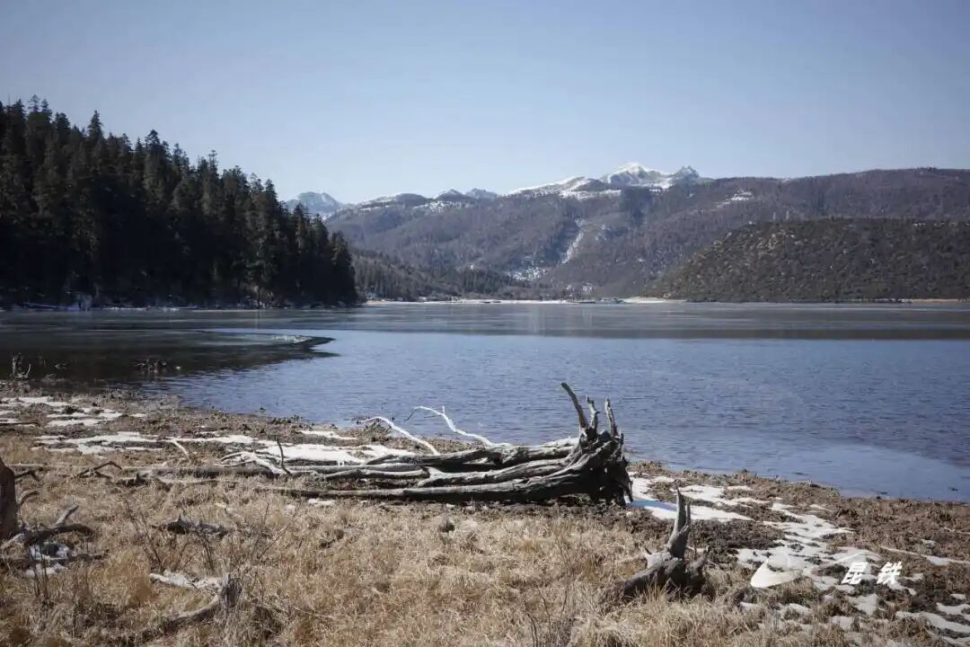 初冬时节的普达措,静谧而美丽。沿着属都湖木栈道徒步,可见雪山倒影、枯树冰挂,林间倏忽穿梭的小松鼠灵动可爱。