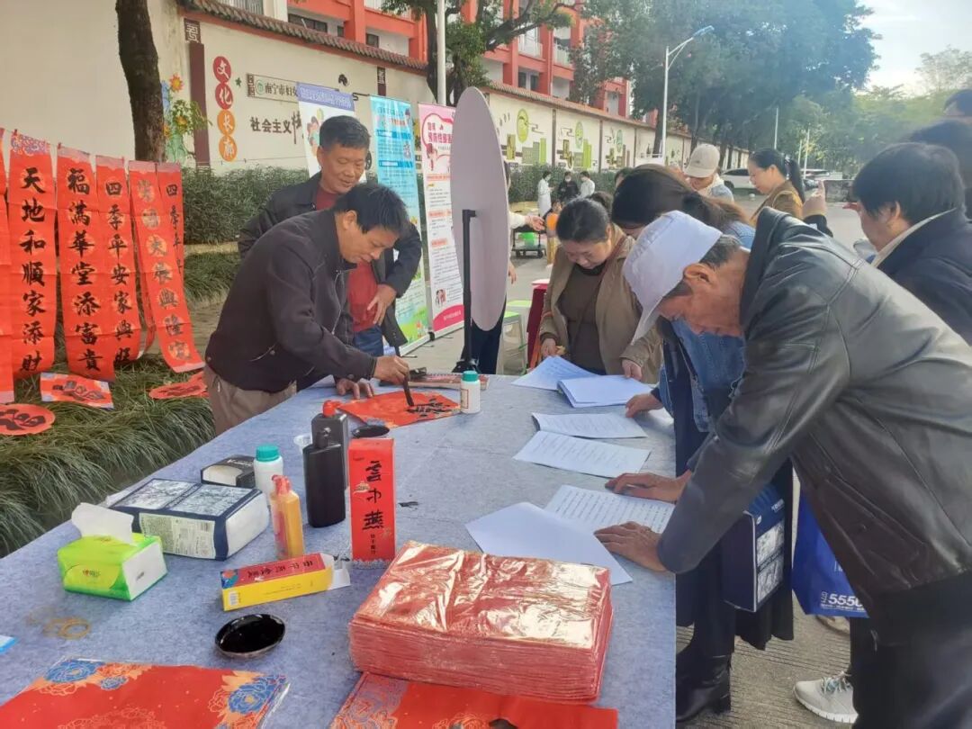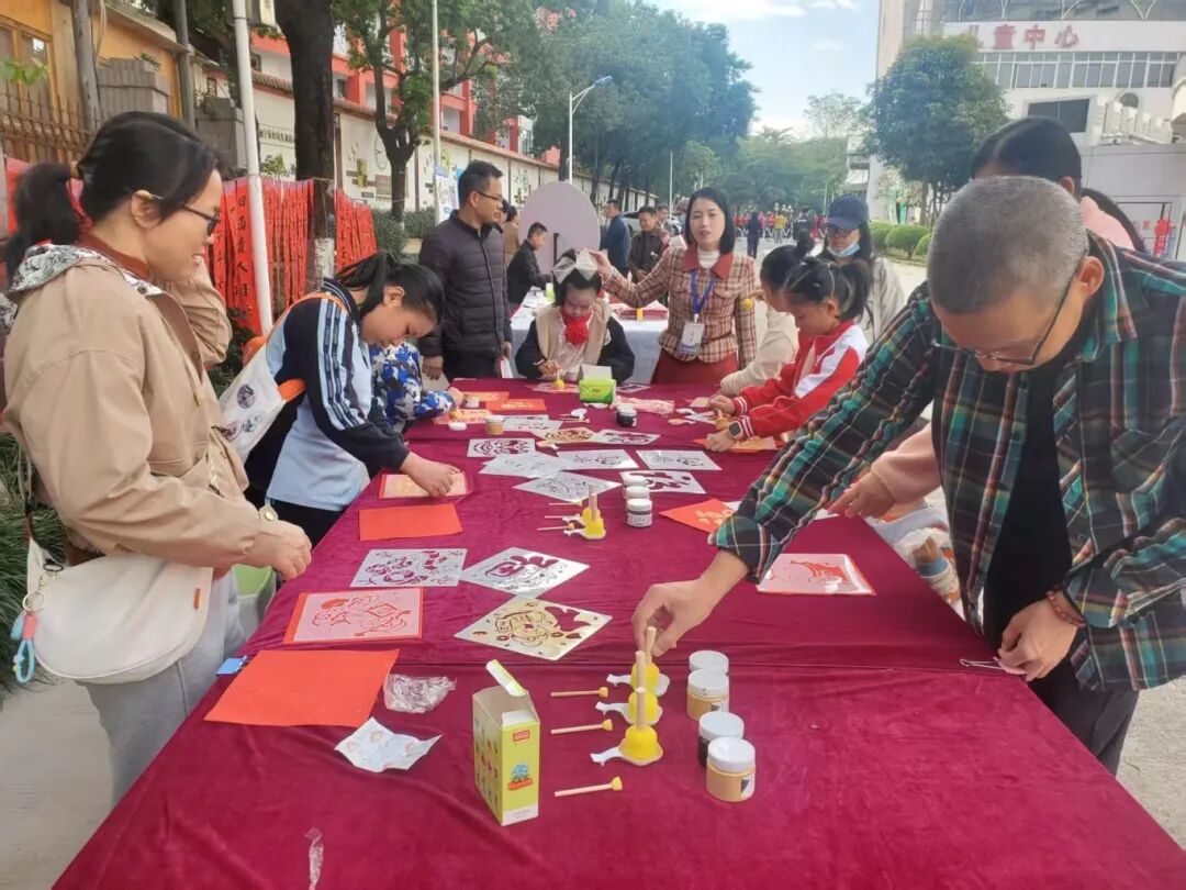 本届艺术节精心设计了九大特色活动板块,充分体现“双龄共融”的创新理念。在同心广场外围,公益美发活动邀请了专业发型师现场演示不同刘海的修剪技巧,传授科学护养知识;非遗体验区通过打油茶的制作展示,让参与者共同感受传统工艺的温度;汤圆制作区见证了“小手牵大手”的温馨场景,在合作中传递团圆甜蜜;文化体验区设置了书法送福和拓印纳福活动,书法老师现场挥毫泼墨,学员亲手制作拓印福字,共同感受传统文化的魅力。