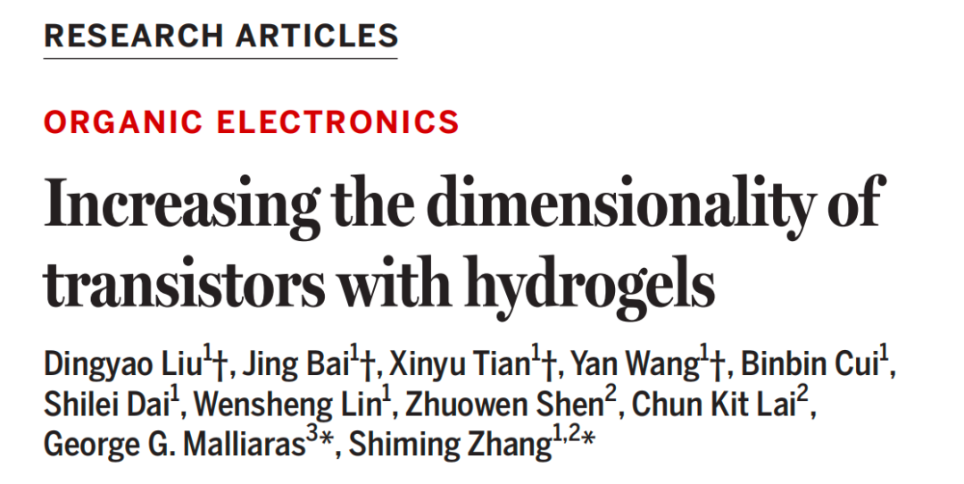 2025年11月20日,香港大学张世明教授团队与剑桥大学GeorgeG.Malliaras教授团队合作,在国际顶尖学术期刊Science上发表了题为:Increasingthedimensionalityoftransistorswithhydrogels的研究论文。
