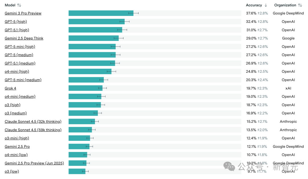 不出意外,Gemini3Pro再次霸榜该项物理研究测试。