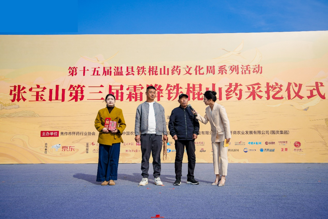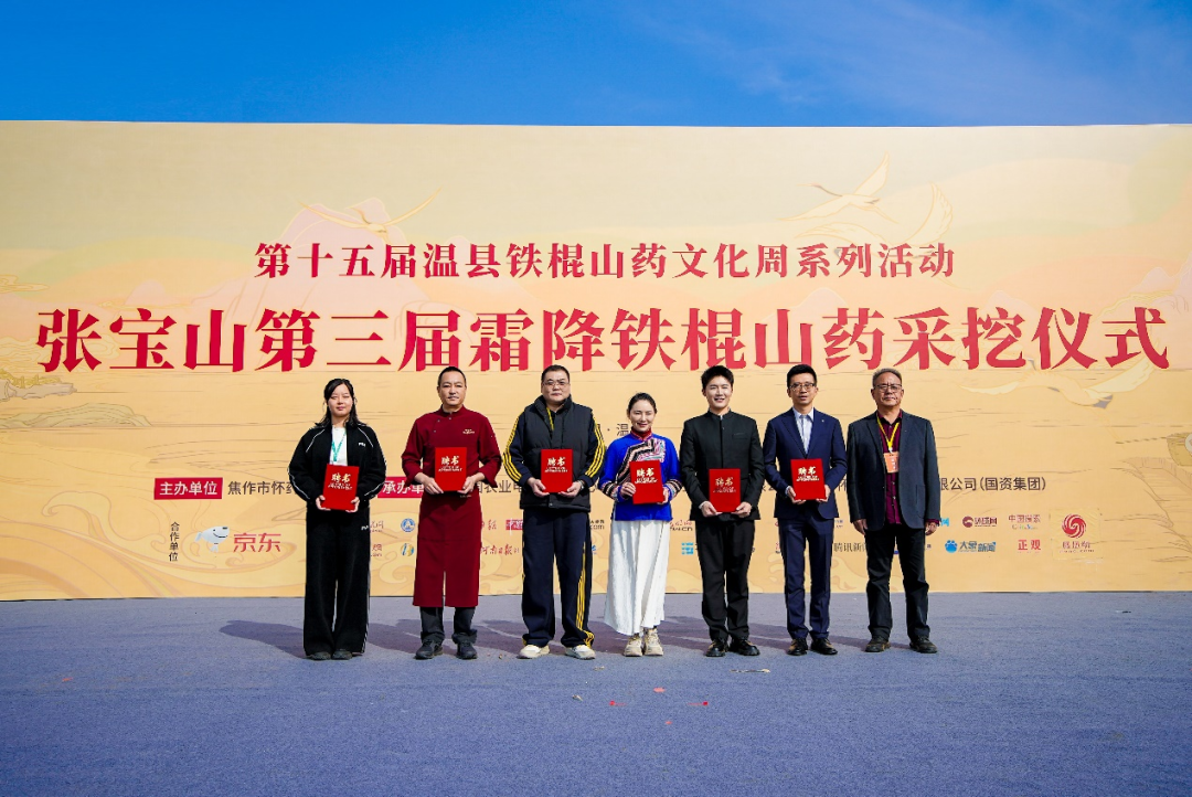 10月23日,正值霜降节气,第十五届温县铁棍山药文化周系列活动——张宝山第三届霜降铁棍山药采挖仪式,在河南温县张宝山有机山药种植基地成功举办。本次活动由焦作市怀药行业协会主办,中国农业电影电视中心、河南张宝山生物科技有限公司、河南怀商农业发展有限公司(国资集团)共同承办。政企媒联动,与多位网络达人齐聚一堂,共同见证了一场融合非遗技艺与现代产业理念的丰收庆典。