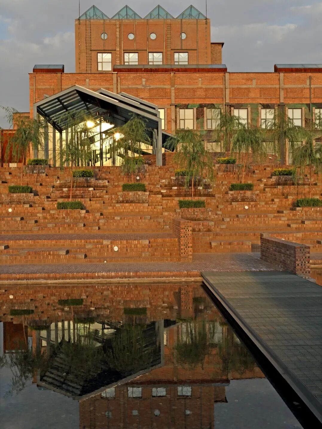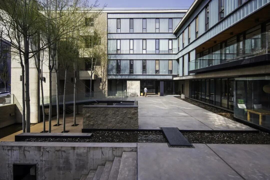 它利用原有地貌,将建筑嵌入深约6米的天然凹地,形成独特的沉降式建筑。不仅没有破坏原有的自然环境,反而成为连接南北场地的“桥梁”和市民活动的广场。
