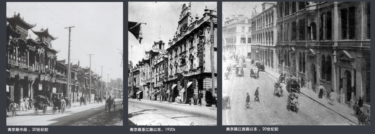 在百货公司出现之前,南京路虽然已是商业要道,但其核心区域仍在四川路以东到外滩片区,这里集中了几个英商百货公司,也是银行、洋行聚集之处。从四川路往西走,街道就越来越疏朗、建筑也愈发趋于中式(图1)。