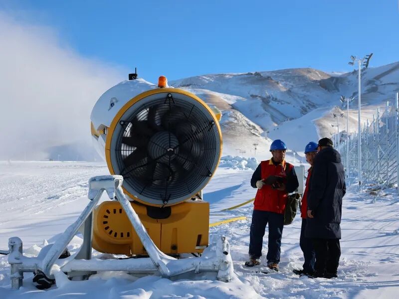 国网博尔塔拉供电公司工作人员对赛里木湖顶峰滑雪场进行用电设备检查。(奥吾东摄)