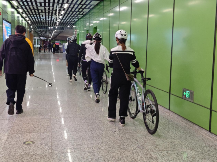 请勿在车站及列车上骑行、跨行哦