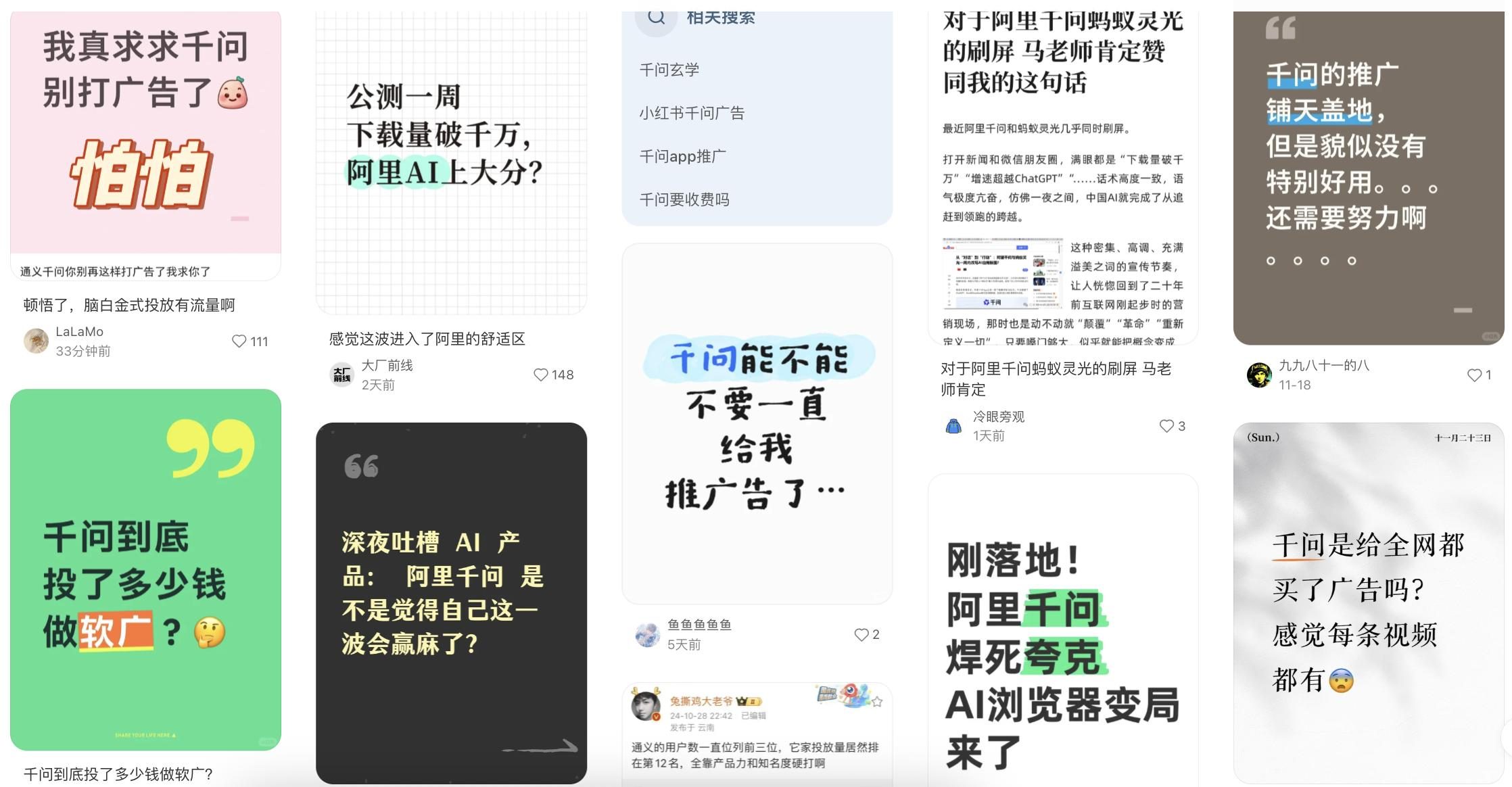 这波宣传的密集程度,用户们集体发出感慨:“一夜之间,铺天盖地,千问是给全网投了广告吗?”还有用户表示疑惑,“这不是早就有的App吗,怎么又开始推广了?”“千问和夸克,不是重复造轮子吗?”