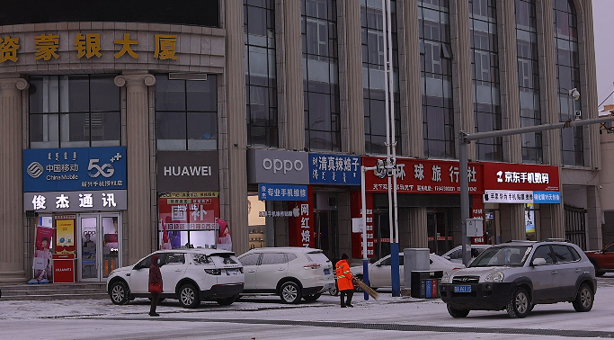 降雪期间,环卫工人们身着作业服,手持扫帚、铁锹对城区主次干道、十字路口、公交站台等重点区域开展扫雪除冰作业,及时消除通行隐患。