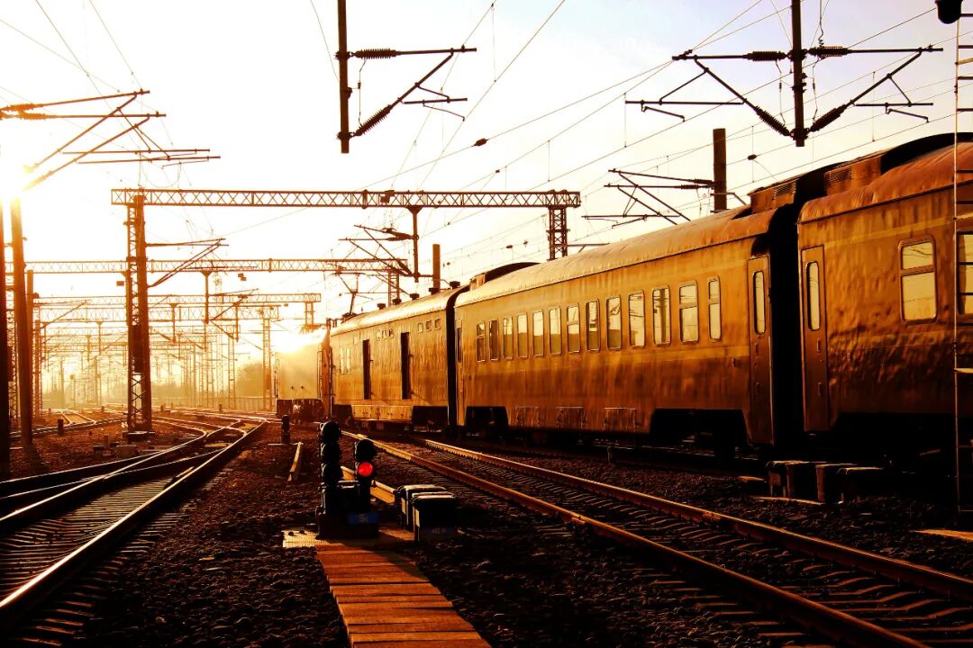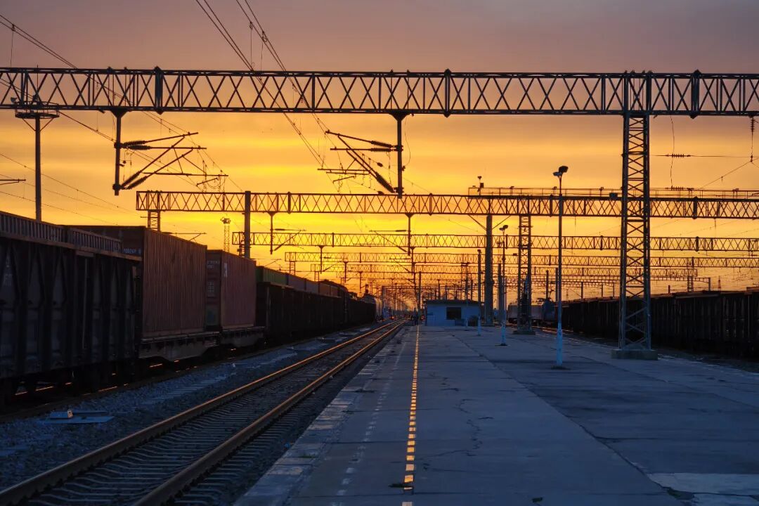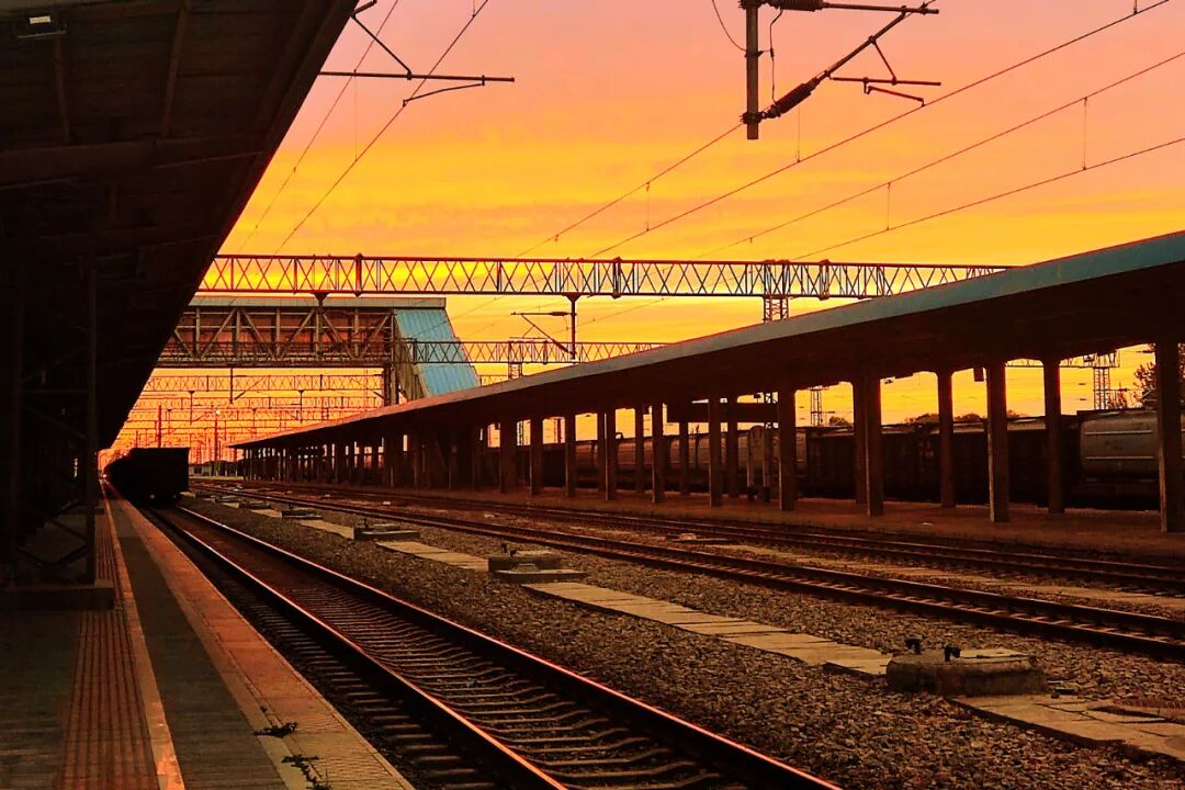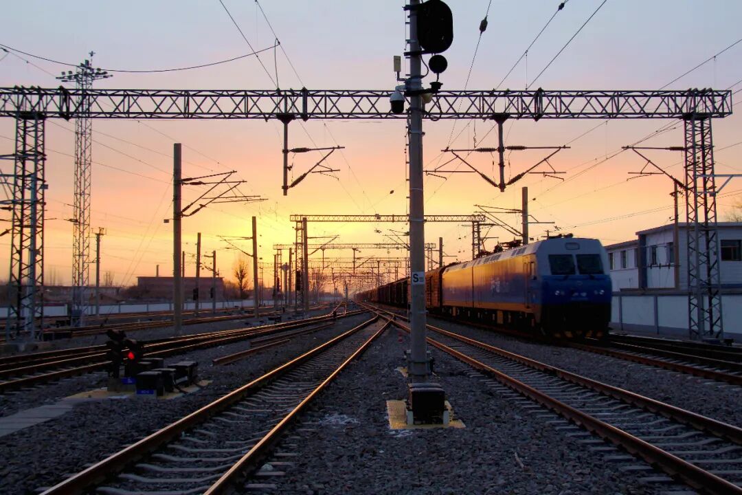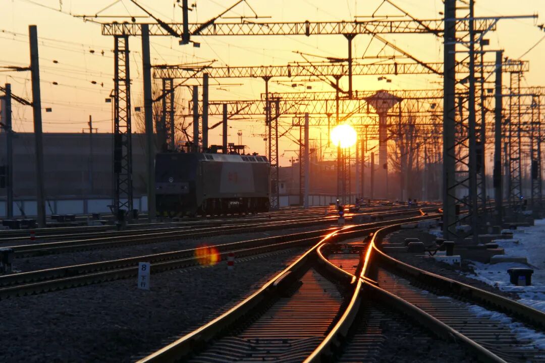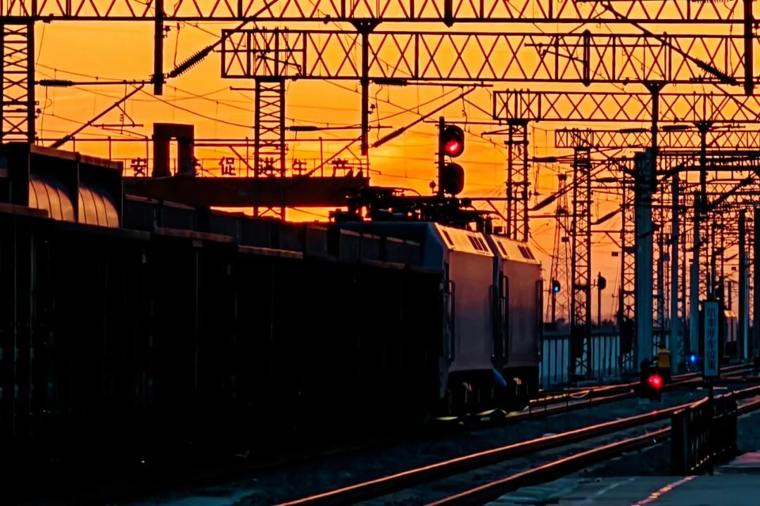列车被镀上一层金色,仿佛披上暖暖的柔纱。纵横交错的钢轨在阳光下,仿佛大地的彩色五线谱,低吟轻唱。站台与钢轨仿佛一对老朋友,在光影的晕染中,见证着每一个清晨与傍晚,铺陈着岁月的轮回。
