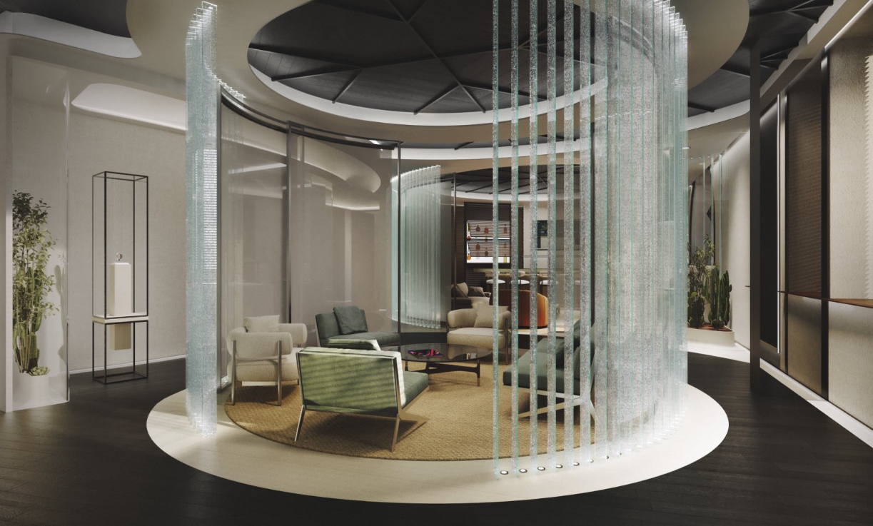 因此,悉尼精品店的设计便不再是一个标准化模板的复制。它占地270平方米,空间开阔通透,摒弃了传统墙体,转而采用品牌标志性的“碎玻璃”鳍片元素,巧妙地划分出不同功能区,既保证了空间的流动性,又营造了私密的氛围。