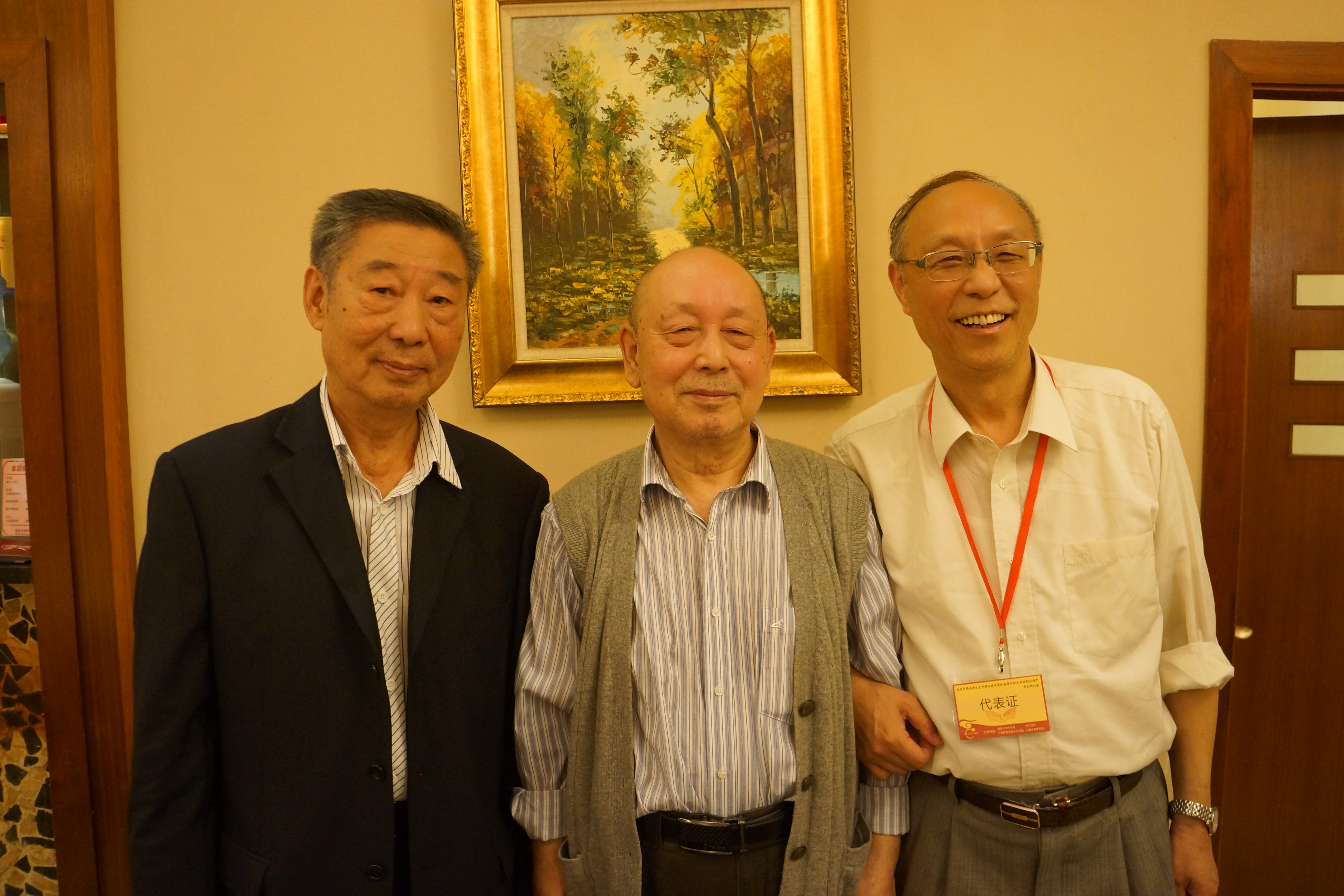 2013年11月,蒋孔阳先生诞辰90周年,曹俊峰(中)、张玉能(左)与朱立元(右)师兄弟合影。