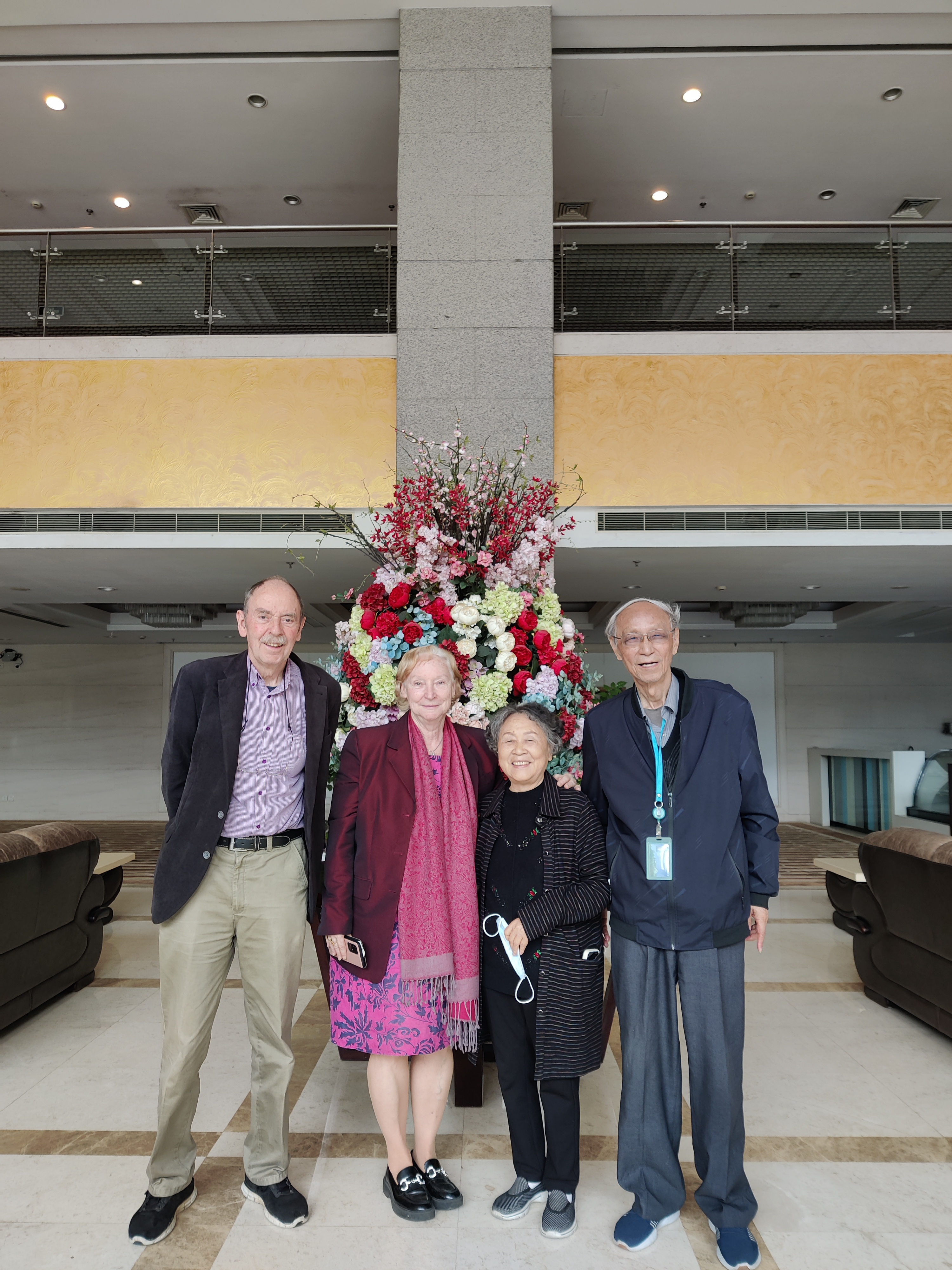 2024年4月,朱立元夫妇与德国著名汉学家卜松山夫妇合影。