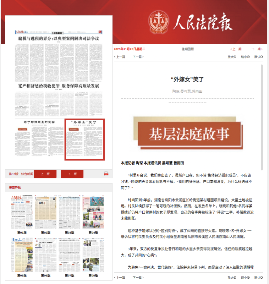 《人民法院报》法庭故事 | “外嫁女”笑了