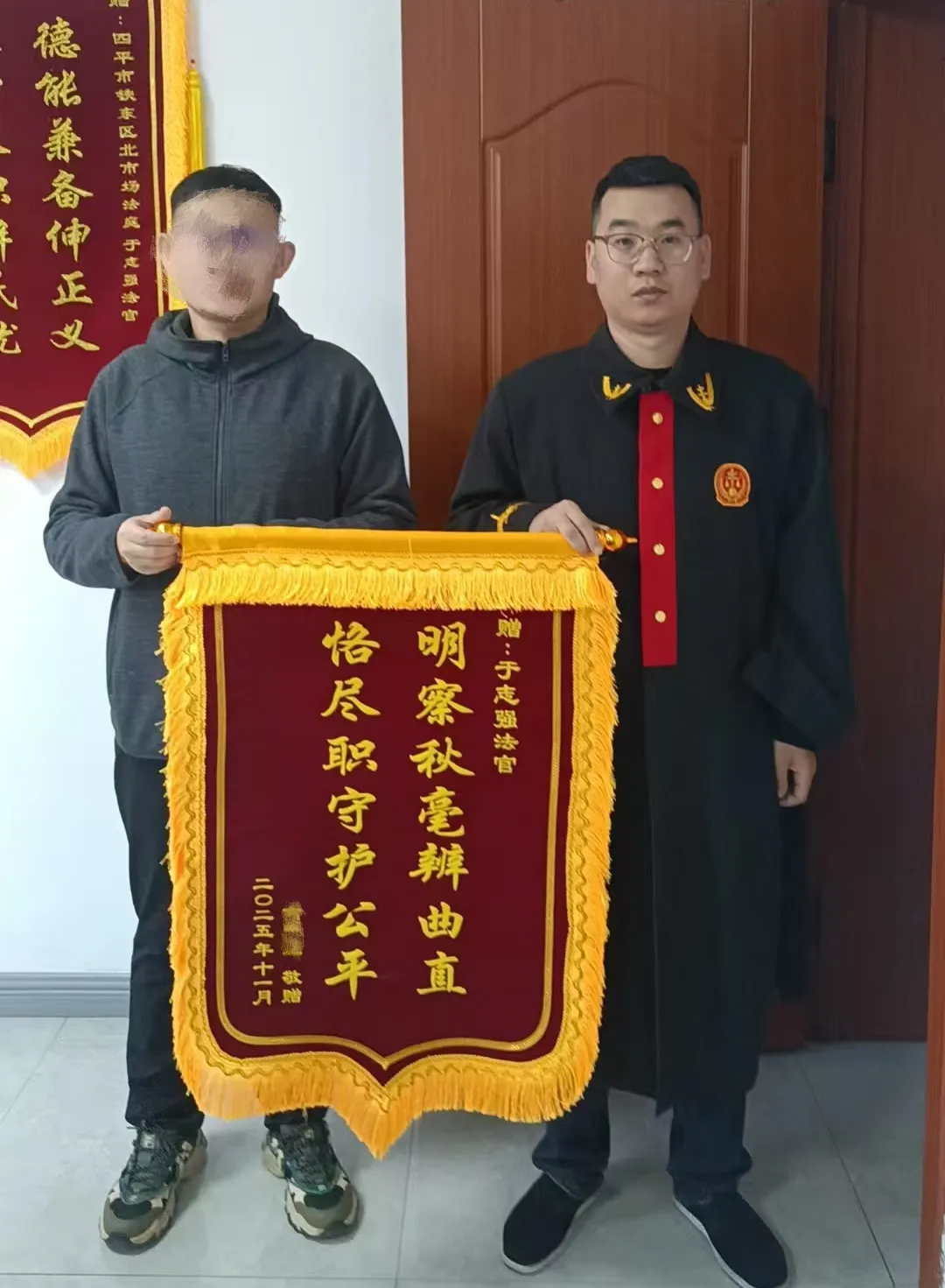 至此,这场因借贷引发的矛盾纠纷,在司法温情与专业的调解下得以妥善化解,既维护了当事人的合法权益,也为昔日好友保留了修复情谊的空间。结案后,当事人以一面绣有“明察秋毫辨曲直、恪尽职守护公平”的锦旗表达了对法官工作的肯定和感谢之情。