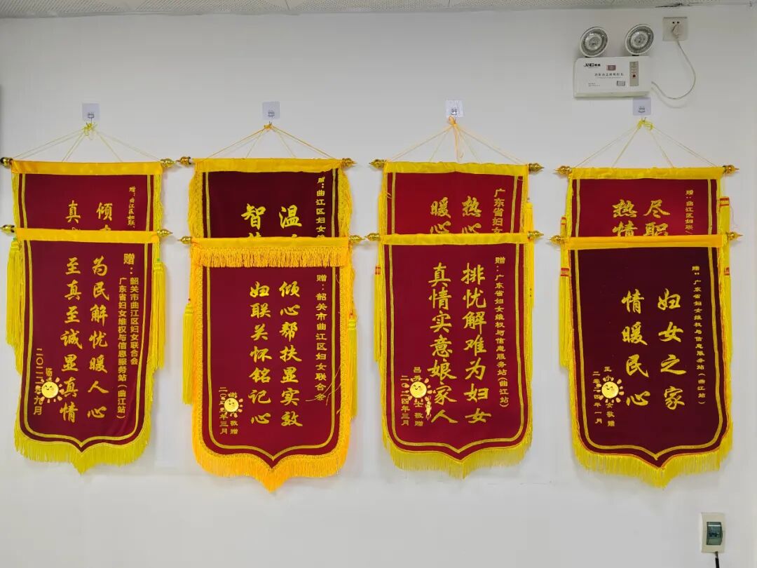 走进由韶关市曲江区妇联承办实施的广东省妇女维权与信息服务站(以下简称曲江站),最引人注目的是维权站墙上挂着的十几面锦旗,它们默默见证着群众对服务站的认可和感谢,其中一面锦旗来自何女士(化名)。
