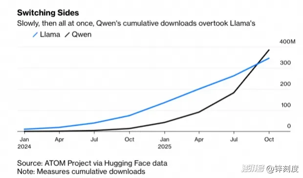 彭博数据显示,千问Qwen下载量已超过Llama
