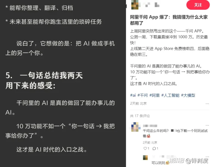 这一周多的时间里,从社交媒体到科技论坛,从专业评测到用户分享,千问简直热得发烫。大家争相下载体验,都想一睹这款被阿里寄予厚望的AI助手,究竟有什么过人之处。又或者说,千问的“办事能力”到底怎么样。