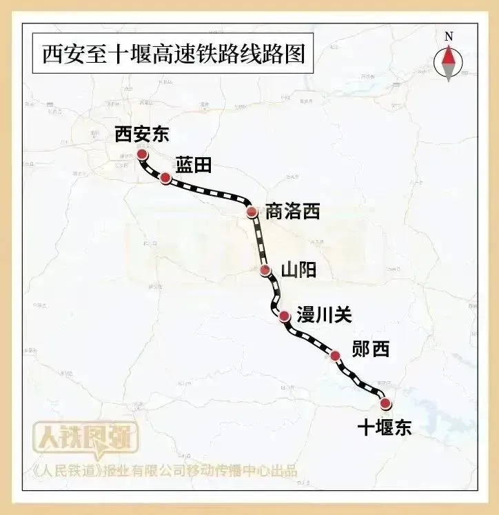 西十高铁自西安东站引出,经蓝田、商洛西、山阳、漫川关、郧西站,接入十堰东站,正线全长255.76公里,设计时速350公里。