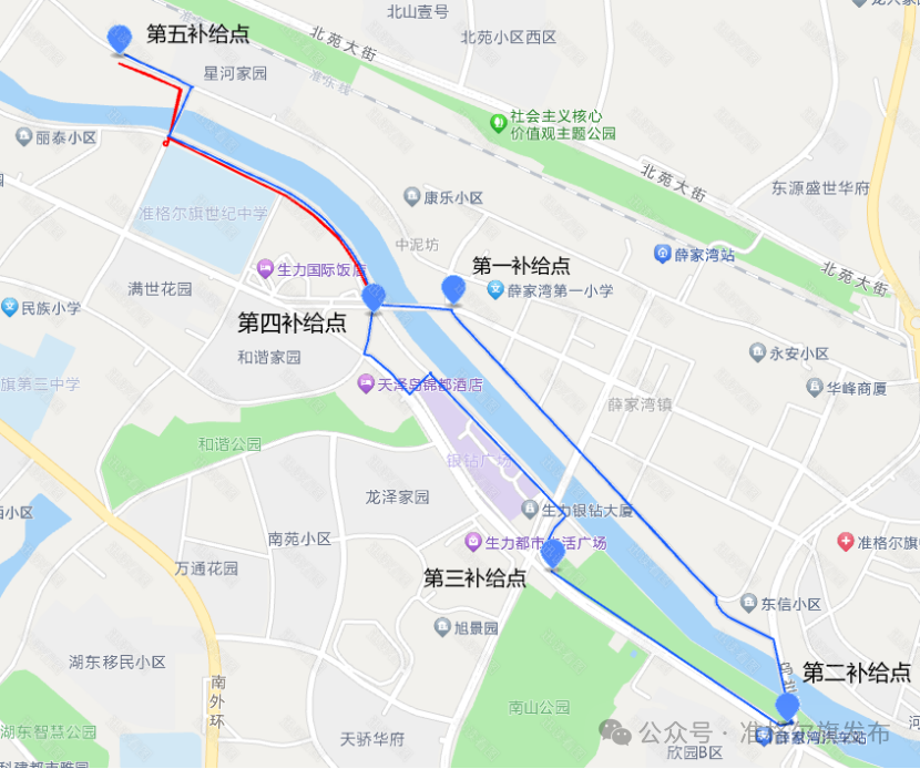 ?♂️健身跑路线:6公里城市景观环线,串联美稷·长河里夜未央不夜城、迎泽桥、竹溪街、准格尔大桥、乌兰桥、滨河南街、晶晶宴会城、湾Night街区、儿童公园、舞韵广场等核心地标与生活场景。