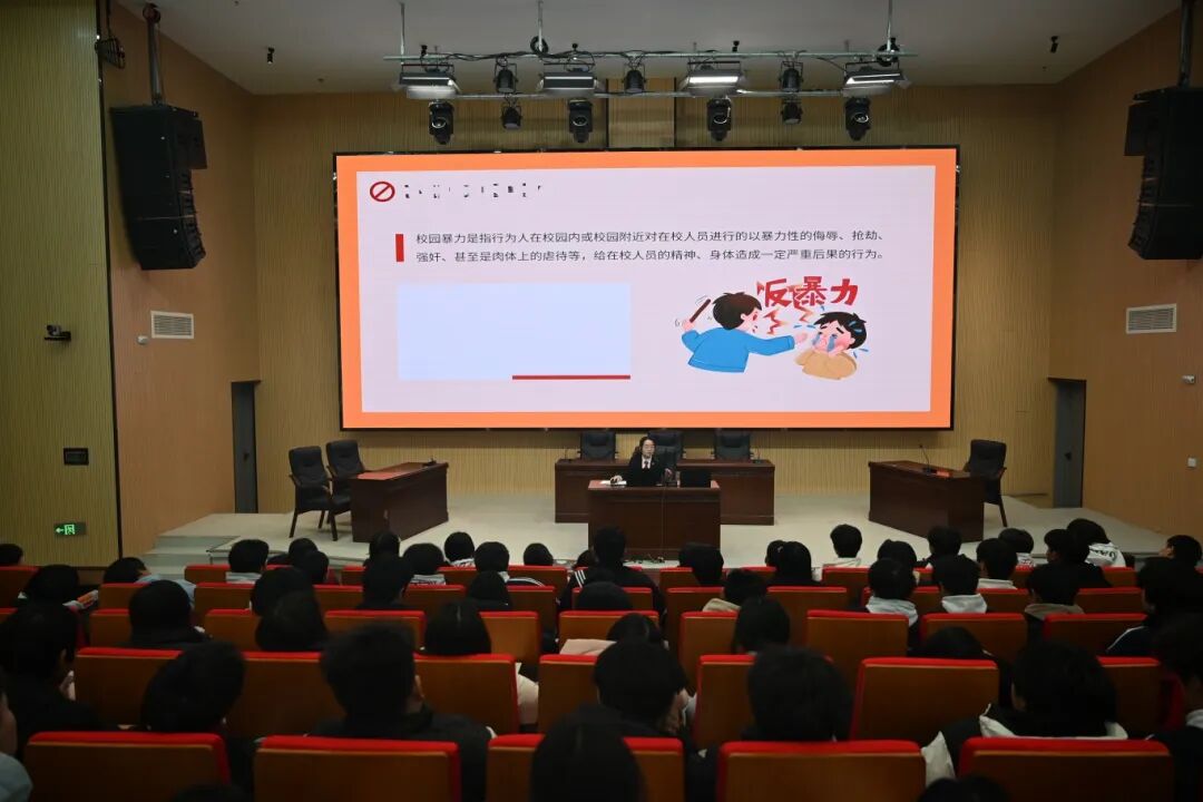 庭审结束后,刑事审判庭以“防范校园暴力与电信诈骗”为主题,为同学们上了一堂生动的法治课。法官助理范星月从校园暴力的定义、表现形式及危害入手,结合相关典型案例,为同学们详细讲解了校园暴力的相关法律知识,告诫同学们要与人为善,用和平的方式去解决问题,不做受害者、不当施暴者也不成为冷漠的旁观者。