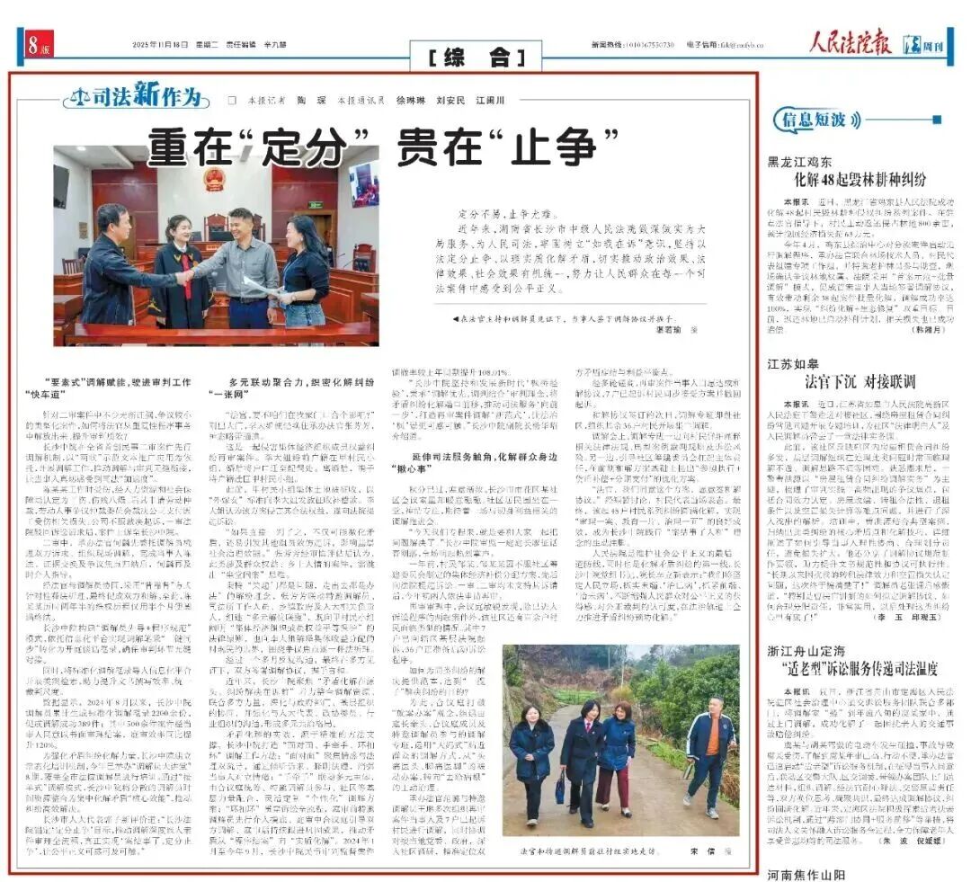 ▽《人民法院报》报道长沙中院:重在“定分”贵在“止争”