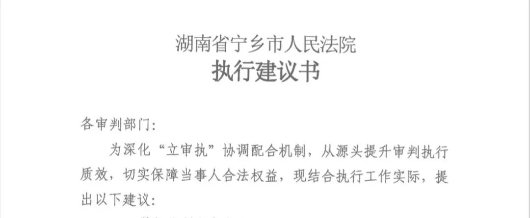 ▽宁乡市法院:发出《执行建议书》深化“立审执”协调配合机制