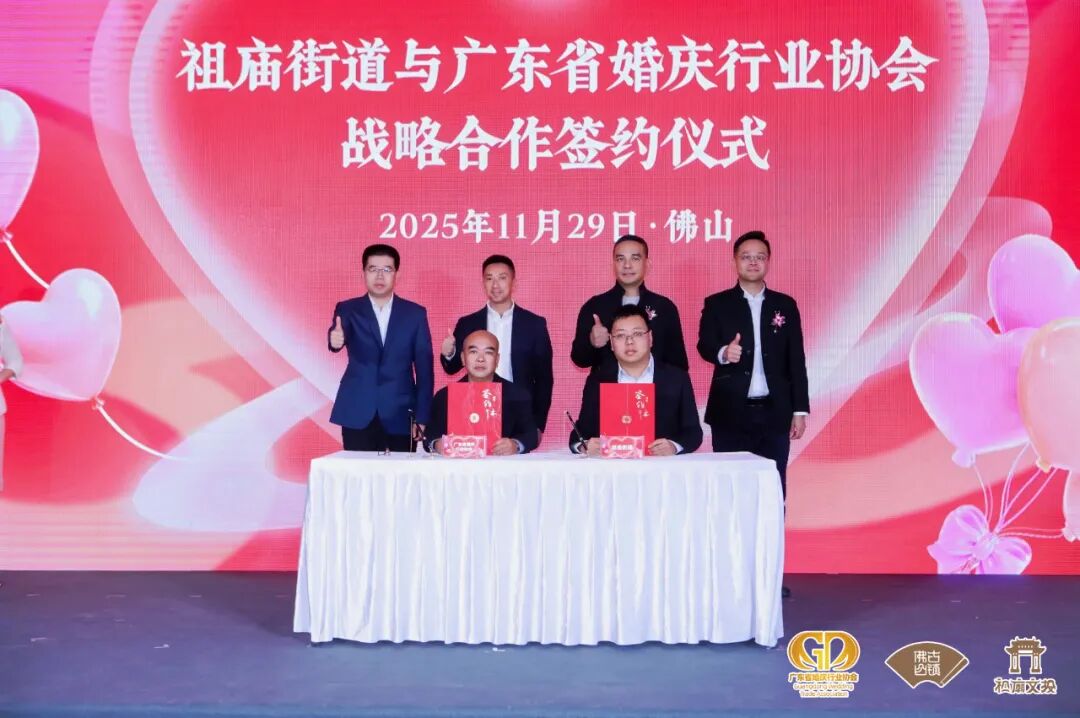 会上,禅城区祖庙街道与广东省婚庆行业协会进行了战略合作的签约。禅城区祖庙街道与广东省婚庆行业协会的携手合作,是助力深化“婚恋+”全链式发展,更推动老城活化与产业升级。