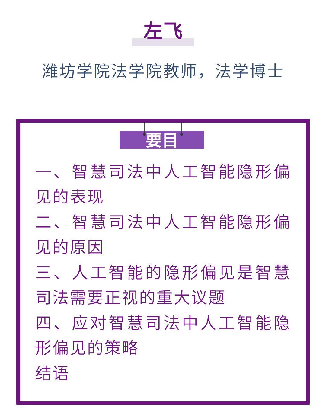 原标题:《左飞|智慧司法中人工智能的隐形偏见及其应对》