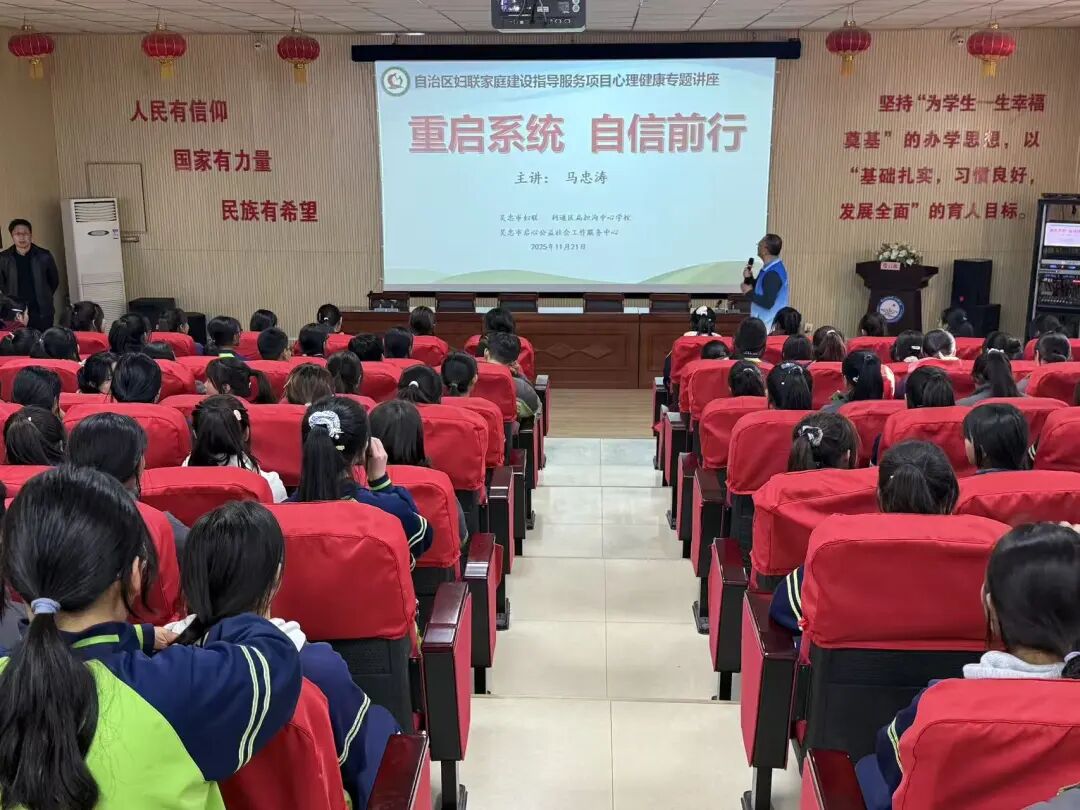 11月21日下午,服务主旨:自治区妇联家庭建设指导服务项目,服务坐标:利通区扁担沟中心学校,服务对象:初三家长朋友及初三学生,这场主题辅导是家长孩子的双向奔赴,家长的奔赴是孩子关键路口处父母要尽责,孩子的奔赴是我要重启自信系统迎难而上不气馁,这是一次爱的聚合,更是一次心与心的交融和家庭教育智慧的自我开启。