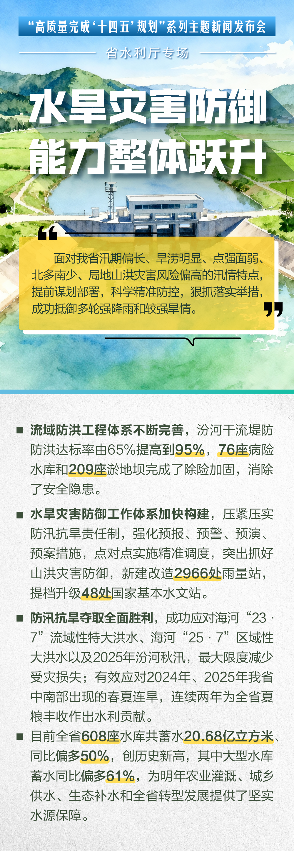 “高质量完成‘十四五’规划”系列主题第十三场新闻发布会(省水利厅专场)今日举行,来看看“十四五”时期全省水利高质量发展成效。