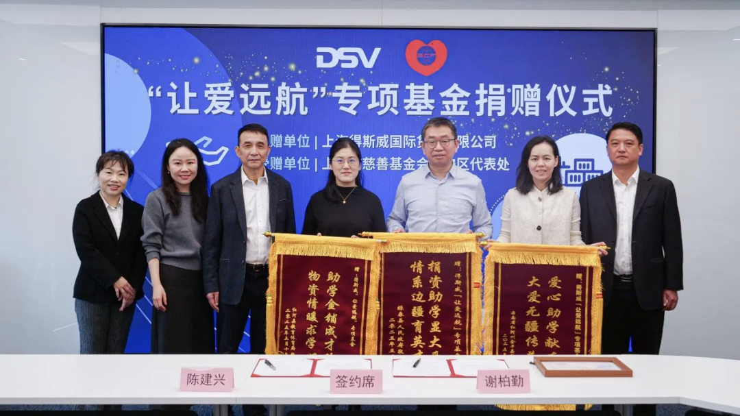12月2日,上海市慈善基金会得斯威“让爱远航”专项基金捐赠仪式举行。该专项基金由上海得斯威国际货运有限公司携手上海市慈善基金会长宁区代表处共同设立,致力于推动云南结对帮扶地区在教育助学、绿色发展、环境保护及帮困等多个领域的全面发展。