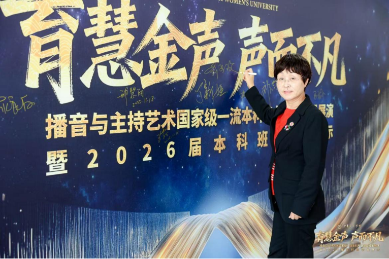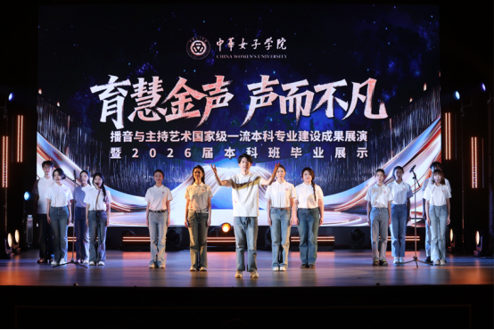11月18日下午,“育慧金声·声而不凡”播音与主持艺术国家级一流本科专业建设成果展演暨2026届本科班毕业展示在中华女子学院本部礼堂举行。本次展演分为“使命在肩·情起声动”与“硕果盈枝·新声绽放”两个主要篇章,共呈现13个精心打造的节目。