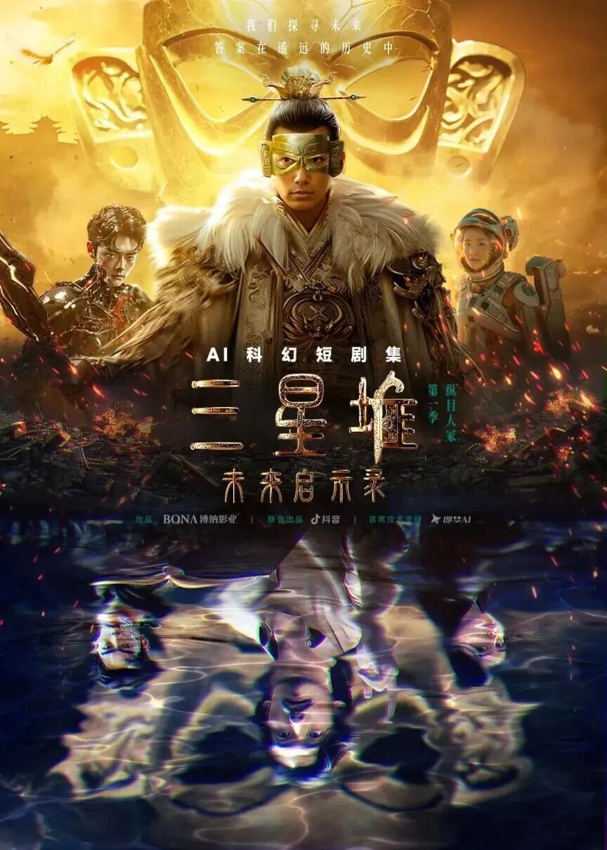 博纳看着电影不挣钱,开始进军AIGC短剧领域,捣鼓起了AI短剧。2024年,博纳和抖音合作,推出了一部AIGC科幻短剧,叫《三星堆·未来启示录》。
