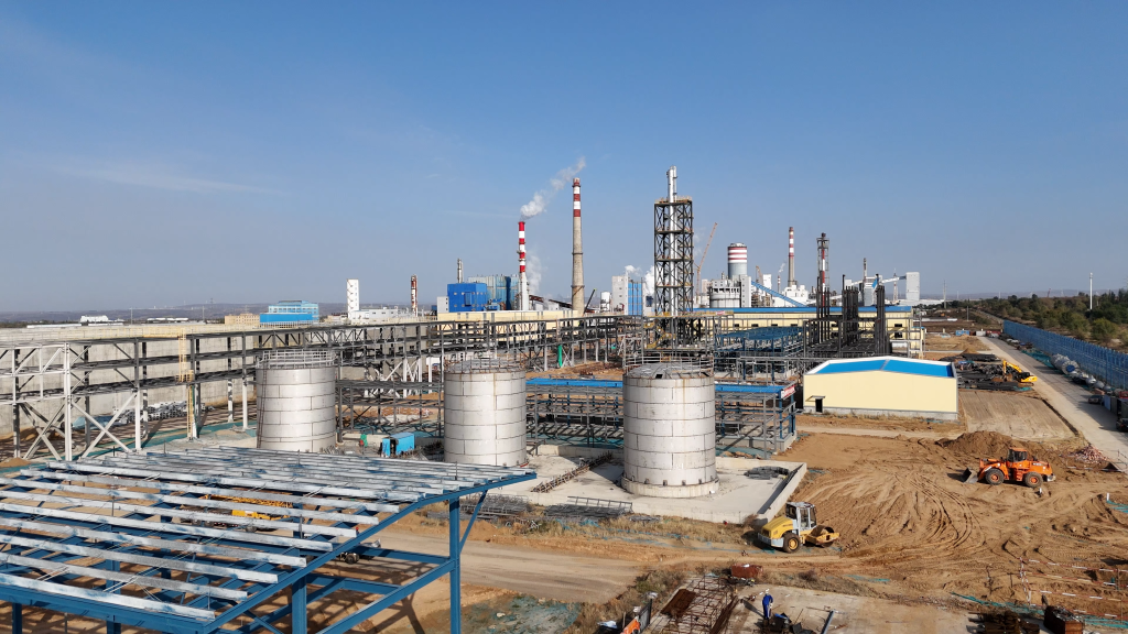 准格尔旗大路产业园,世界首套万吨级二氧化碳制芳烃工业试验项目正在加速建设。 澎湃新闻记者 陈鑫露 图