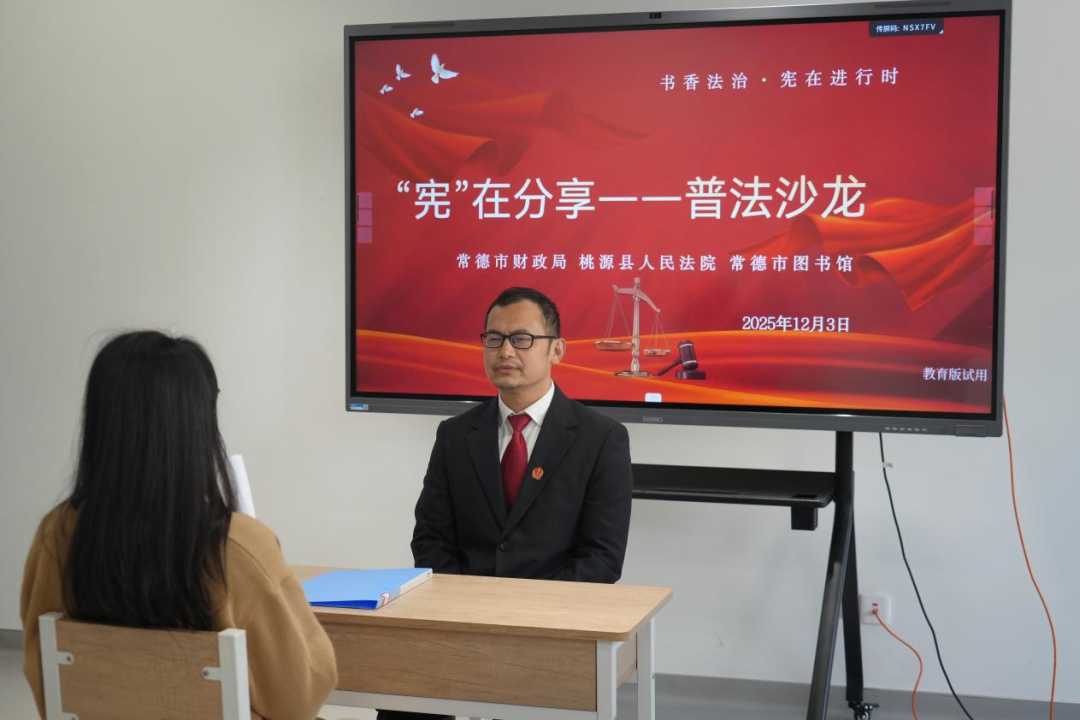 _ 12月3日,湖南省常德市桃源县人民法院漆河法庭的法官们走进常德市图书馆,为现场的广大成年读者展开了一场别开生面的 “‘宪’在分享——成年人普法沙龙” 活动,让宪法精神在书香中浸润进市民生活。