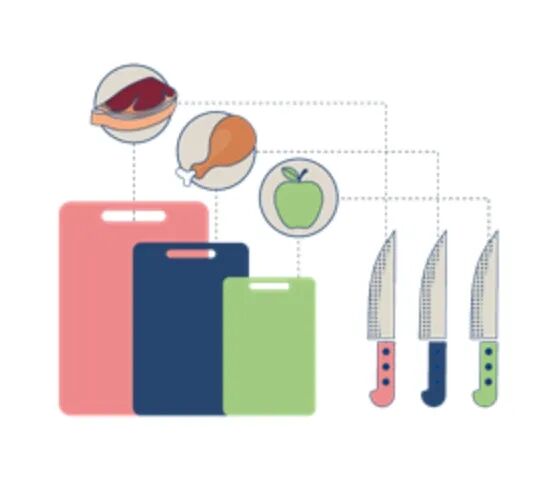 ● 准备多把刀具,分别用于处理不同的食材(至少生熟要分开);