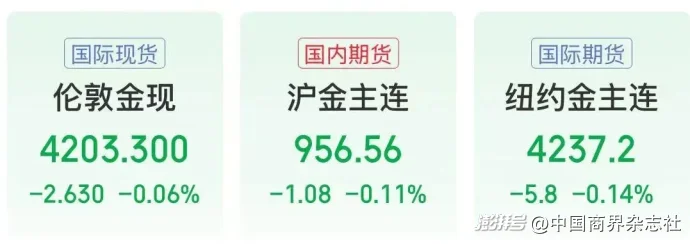 当地时间12月4日尾盘,现货黄金涨0.16%,报4209.74美元/盎司,全天呈现V形反转态势。COMEX黄金期货涨0.15%,报4238.40美元/盎司。截至北京时间12月5日发稿,黄金价格有所回调。