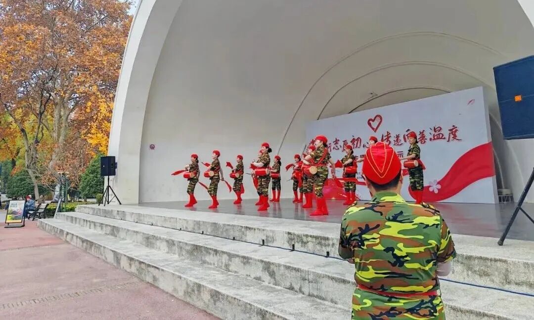 文艺表演的舞台,成了志愿者们绽放光彩的另一片天地。虹桥公园七彩腰鼓队的队员们敲响非遗腰鼓,铿锵的鼓点奏响志愿的激情,这支备受认可的队伍,曾多次受邀为各类活动开场,如今将非遗魅力带到志愿舞台;水霞公园、天山路街道茅台小区等广场舞队伍的志愿者阿姨们,以《梅花赋》《舞动中国》等舞蹈,跳出了热情与活力;华山绿地的“百灵鸟团队”虽年近七旬,平日里仍常常组织歌友歌唱,舞台上一曲《我爱你中国》,唱出了志愿者们对祖国的赤诚之心。