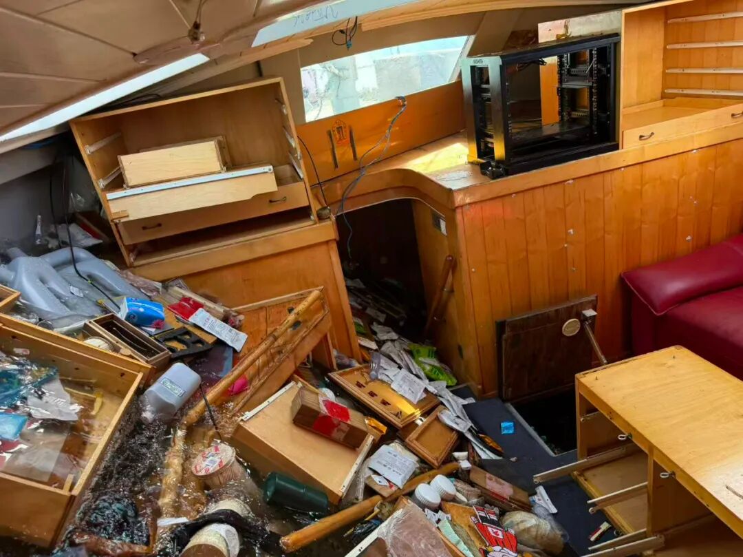 航行船只设备全部遭毁灭性劫掠拆毁,包括发动机、发电机、缆索帆具、救生艇、舷外机等核心部件,以及船上所有电器、家具等物品;