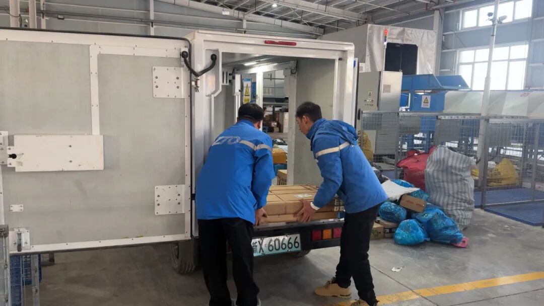 当车辆抵达驿站后,智能无人快递车会自动联系站点负责人,驿站工作人员使用权限开启货仓,并对送达包裹进行分类分拣、扫码入柜。完成卸货后,智能无人快递车还能携带退换货包裹返回分拣中心,无缝衔接下一轮配送。