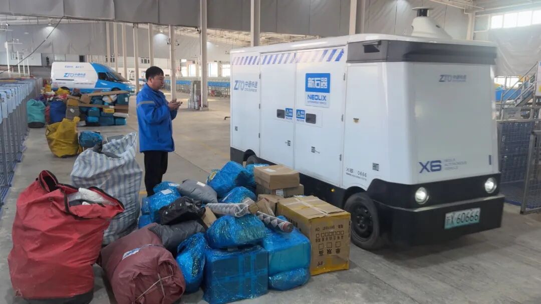 快递员艾合麦提·托合提一边装货一边向记者介绍他的“新搭档”:“货物装车后,只需在手机上轻轻一点,就能发起配送。它会自动将包裹运送到驿站,省去了我们跑中转的环节,让我们能更专注于上门取件与收件工作,整体配送效率提升了许多!”