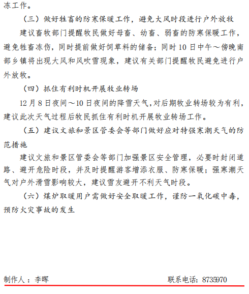 5.寒潮天气道路难行,严禁前往未开发区域游玩,如进行滑雪等户外项目,请在正规场所内进行,确保安全。