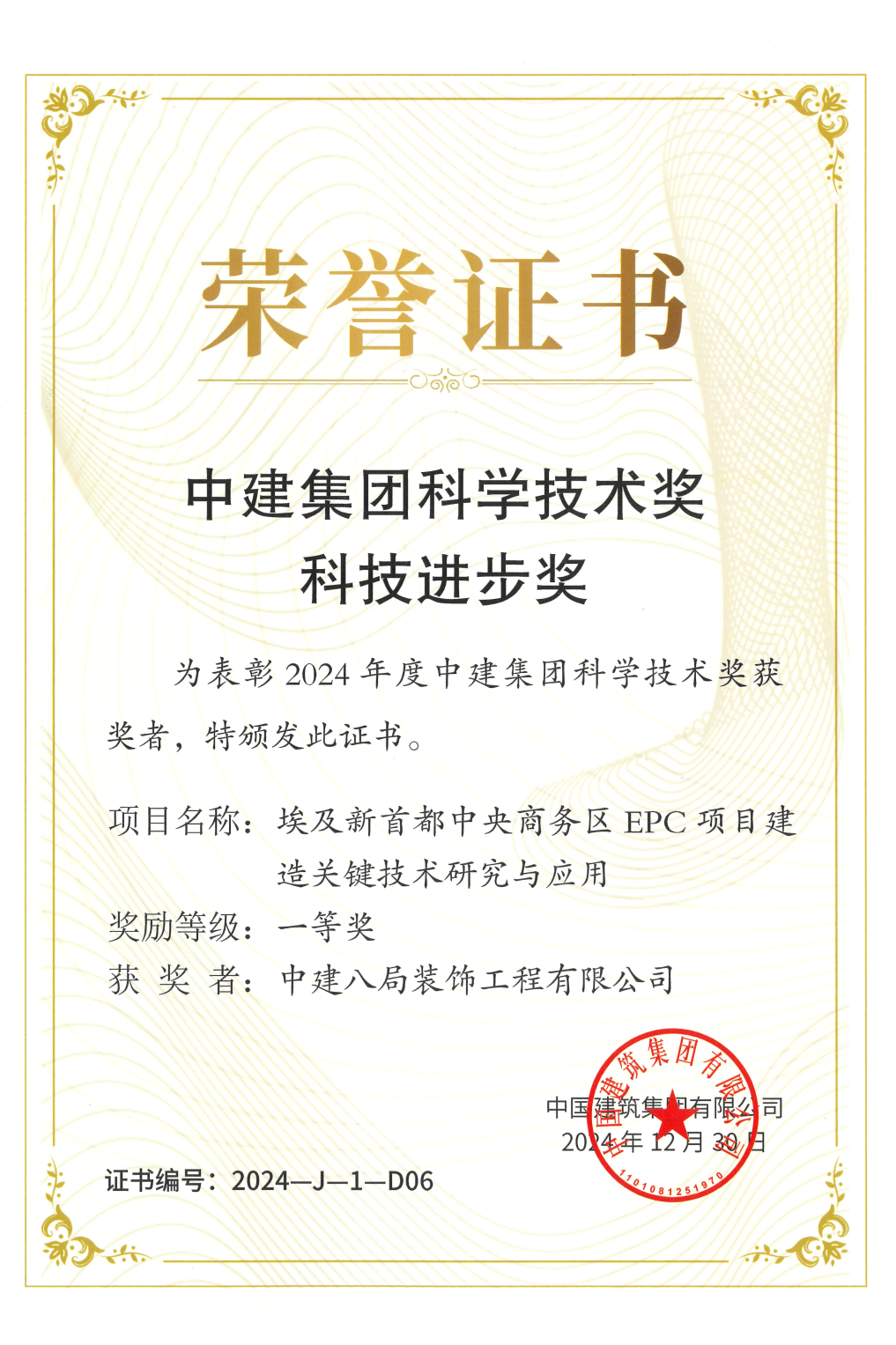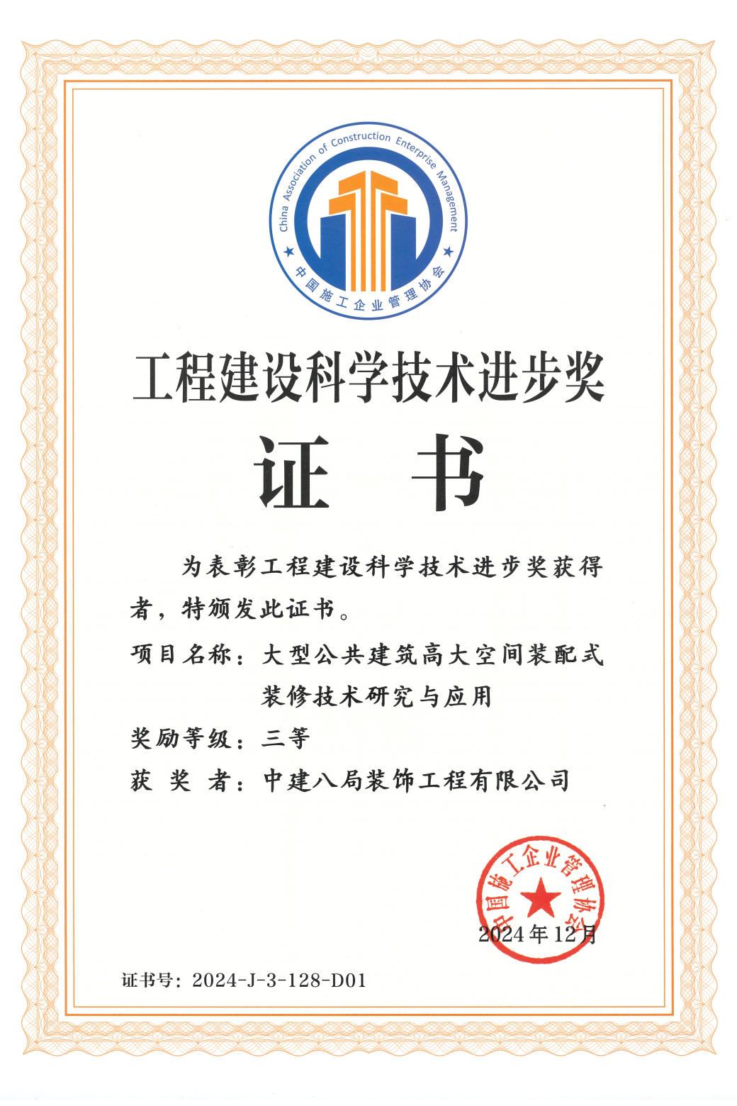 孵化局级科技产品2项,斩获140项省部级科技奖,“大型公共建筑高大空间装配式装修技术”等10项科技成果经鉴定达到国际先进及以上水平。历年来,累计获得詹天佑奖9项、鲁班奖50项、国家优质工程奖33项、中国建筑工程装饰奖101项、中国安装之星4项、省部级质量奖项170余项。