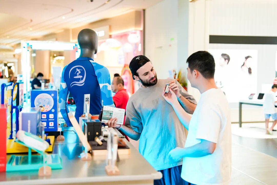 记者走进开在深业上城的深圳首家市内免税店看到,除了传统品类,这里特设“深圳之光”电子科技体验廊,集中展示科大讯飞、影石、优必选、荣耀、华为等本土优质科技品牌产品。三三两两的境外游客,时不时地驻足观看产品性能,精心选购。