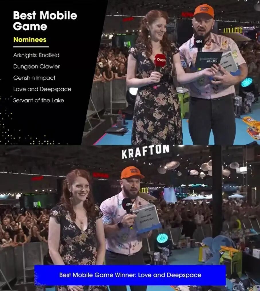 8月24日,2025年德国科隆国际游戏展落下帷幕,在这场汇聚来自全球72个国家和地区1500余家展商的游戏行业盛会上,由叠纸科技开发的《恋与深空》荣获“最佳移动游戏奖”,这是科隆展历史上首款获得该奖项的女性向游戏作品。