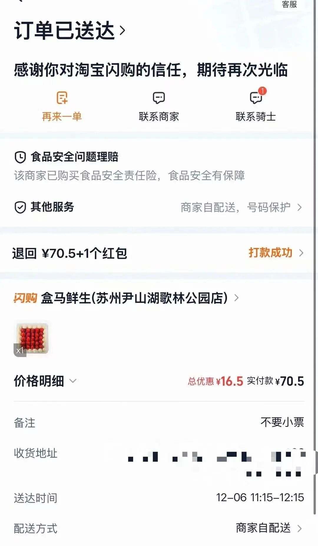 “已收到退款,态度很好”