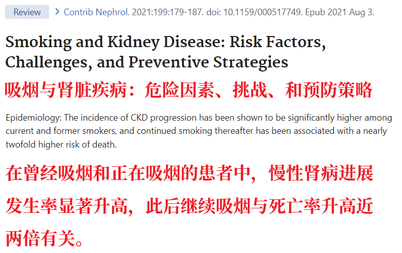 与不吸烟的人相比,经常抽烟的人,肾病进展风险显著增加,死亡风险显著升高。